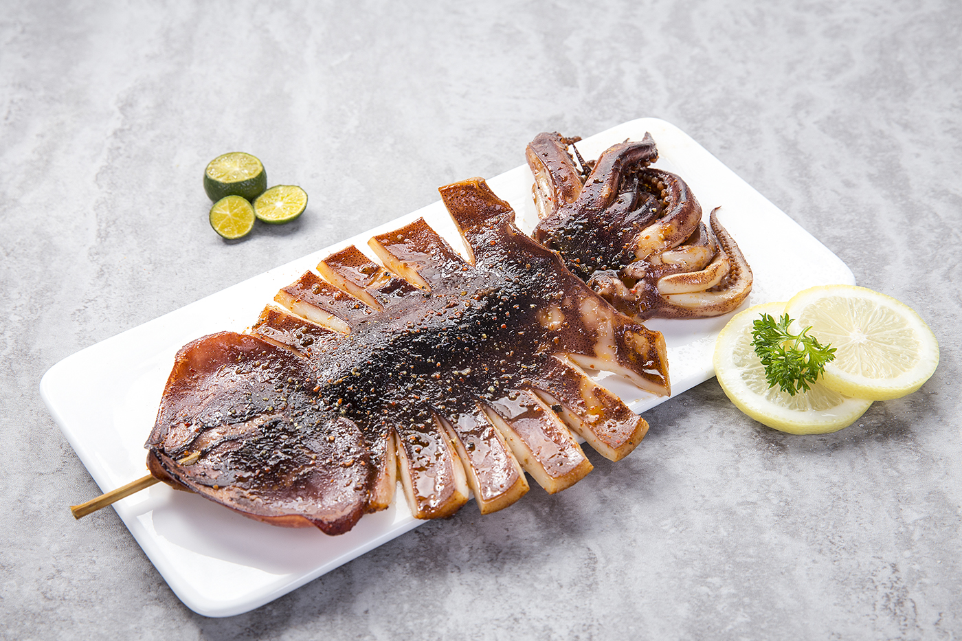整只大西洋深海魷魚,搭配秘制燒烤醬料炭烤,微波均可,操作簡(jiǎn)單,美味經(jīng)典
