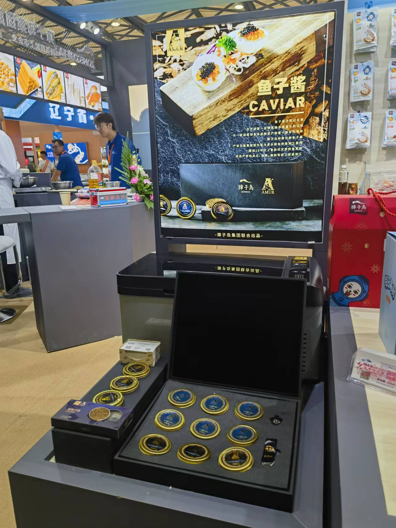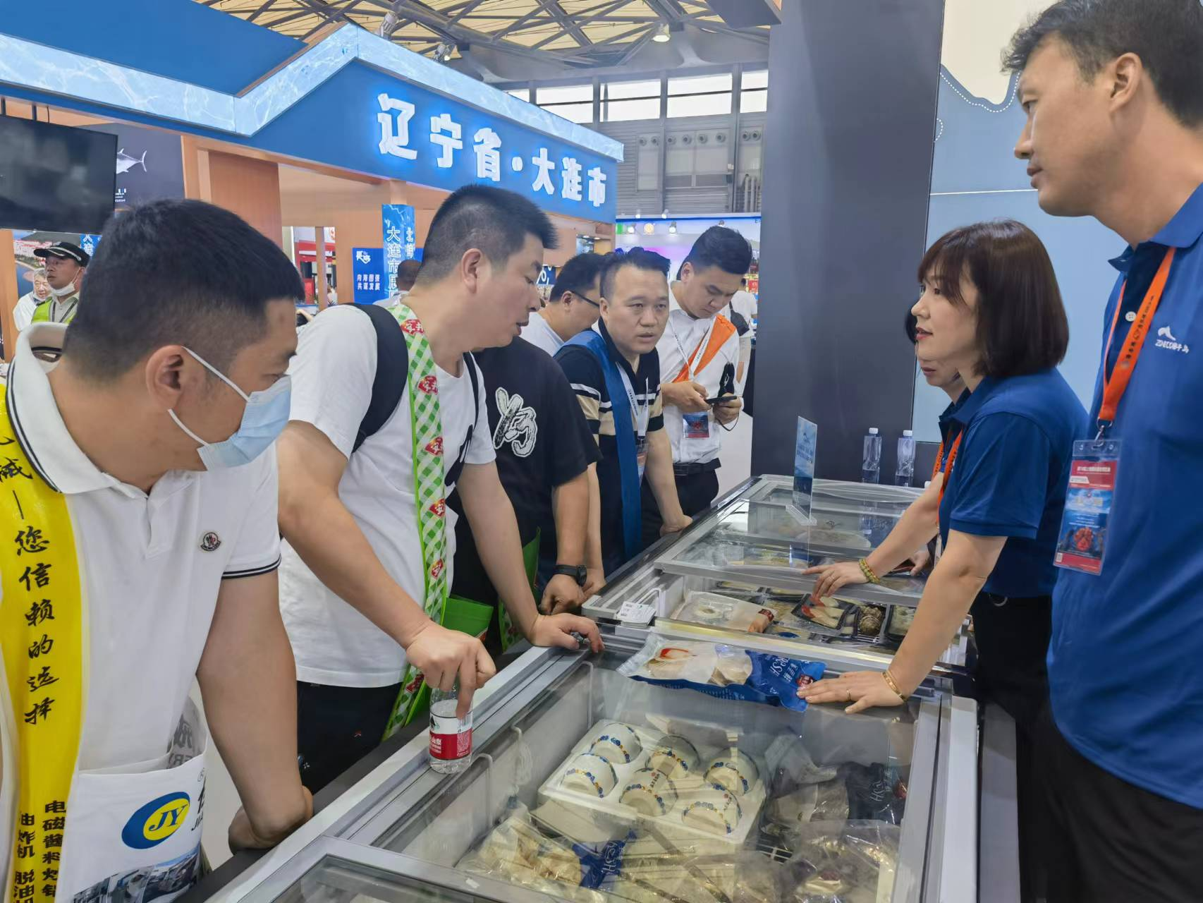 獐子島集團(tuán)展位前人頭攢動(dòng),琳瑯滿目的展品包括刺參系列、冷水活鮮系列、海洋預(yù)制菜系列、魚(yú)子醬系列等產(chǎn)品集體亮相。憑借著獐子島的高端品質(zhì)、品牌影響力和豐富品類,吸引了眾多客商、同業(yè)洽談合作及交流學(xué)習(xí)。
