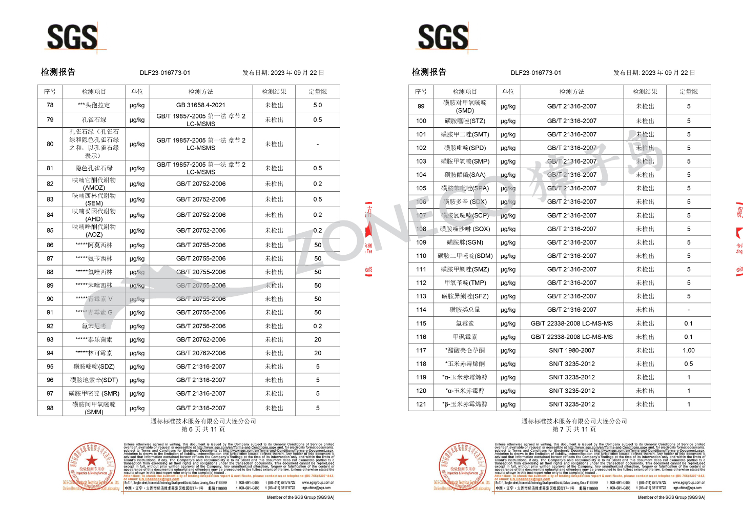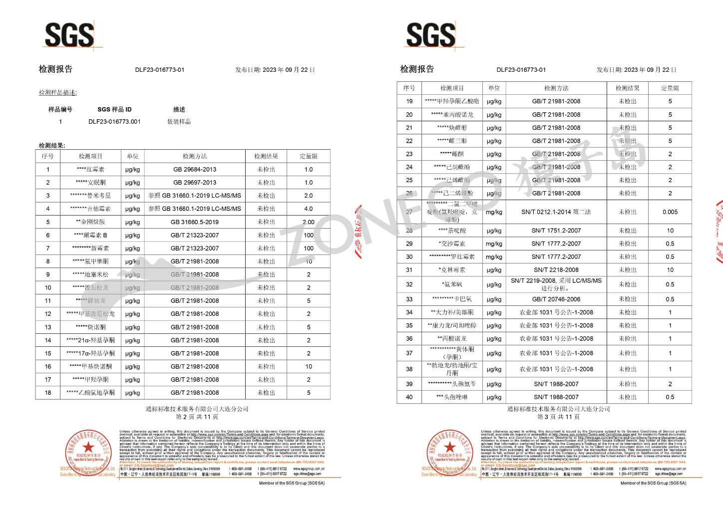 此次檢驗項目依據(jù)中華人民共和國農(nóng)業(yè)農(nóng)村部第250號、農(nóng)業(yè)農(nóng)村部2292號、原中華人民共和國農(nóng)業(yè)部公告235號、GB31650食品中獸藥最大殘留量及歷年來國家食品安全監(jiān)督抽檢項目等相關(guān)法規(guī)、公告和監(jiān)督抽檢項目確定。如消費者關(guān)注的抗生素類、激素類、殺蟲劑等。