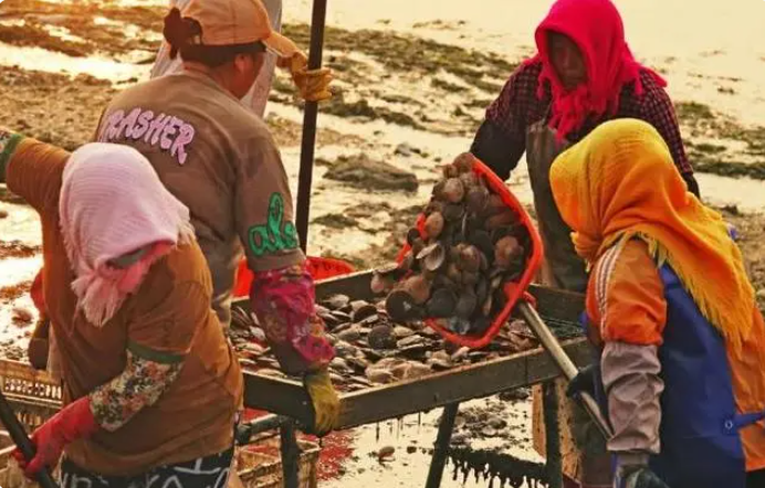 潮水下降的時候,近海灘涂的水位降低,部分灘涂甚至能夠露出水面,這里是黃蜆子、白蜆子的天然棲息地。