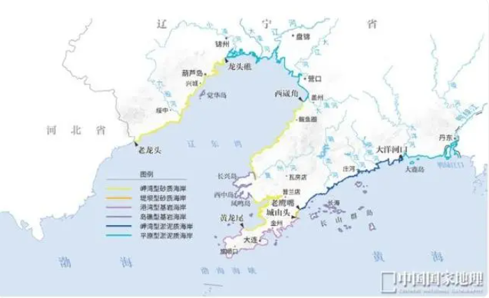 遼寧漫長的海岸線自山海關(guān)起,向東北方向彎折,到盤錦和營口之后海岸線又向南延伸,渤海在這里形成了伸向東北方向的遼東灣;