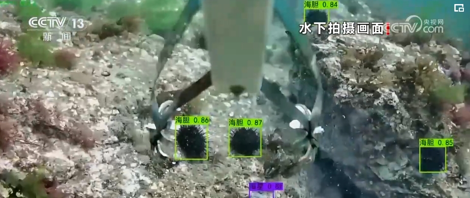 產(chǎn)量上來了,如何提升養(yǎng)殖效能?過去,深海底播養(yǎng)殖收獲捕撈需要潛水員潛入海中,不僅捕撈難度大,還有安全風(fēng)險(xiǎn)?,F(xiàn)在,由大連海事大學(xué)自主研發(fā)的“海鷹號(hào)”水下捕撈機(jī)器人,它集成了最新的水下仿生視覺增強(qiáng)技術(shù)可以下水作業(yè)。它的機(jī)械手夾取部分是多鋸齒結(jié)構(gòu),這樣夾的準(zhǔn)確,同時(shí)它可以反饋夾取目標(biāo)的松緊程度,實(shí)現(xiàn)海產(chǎn)品的無損抓取。在水下它不僅能靈巧避開障礙,還能識(shí)別出海產(chǎn)品,分辨大小、精準(zhǔn)捕撈。單個(gè)海產(chǎn)品捕撈僅需4秒鐘,可以連續(xù)作業(yè)4—7小時(shí),效率高、更安全。“海鷹號(hào)”還能當(dāng)海洋牧場(chǎng)的“眼睛”,可視化監(jiān)測(cè)海產(chǎn)品生長密度和成活率。