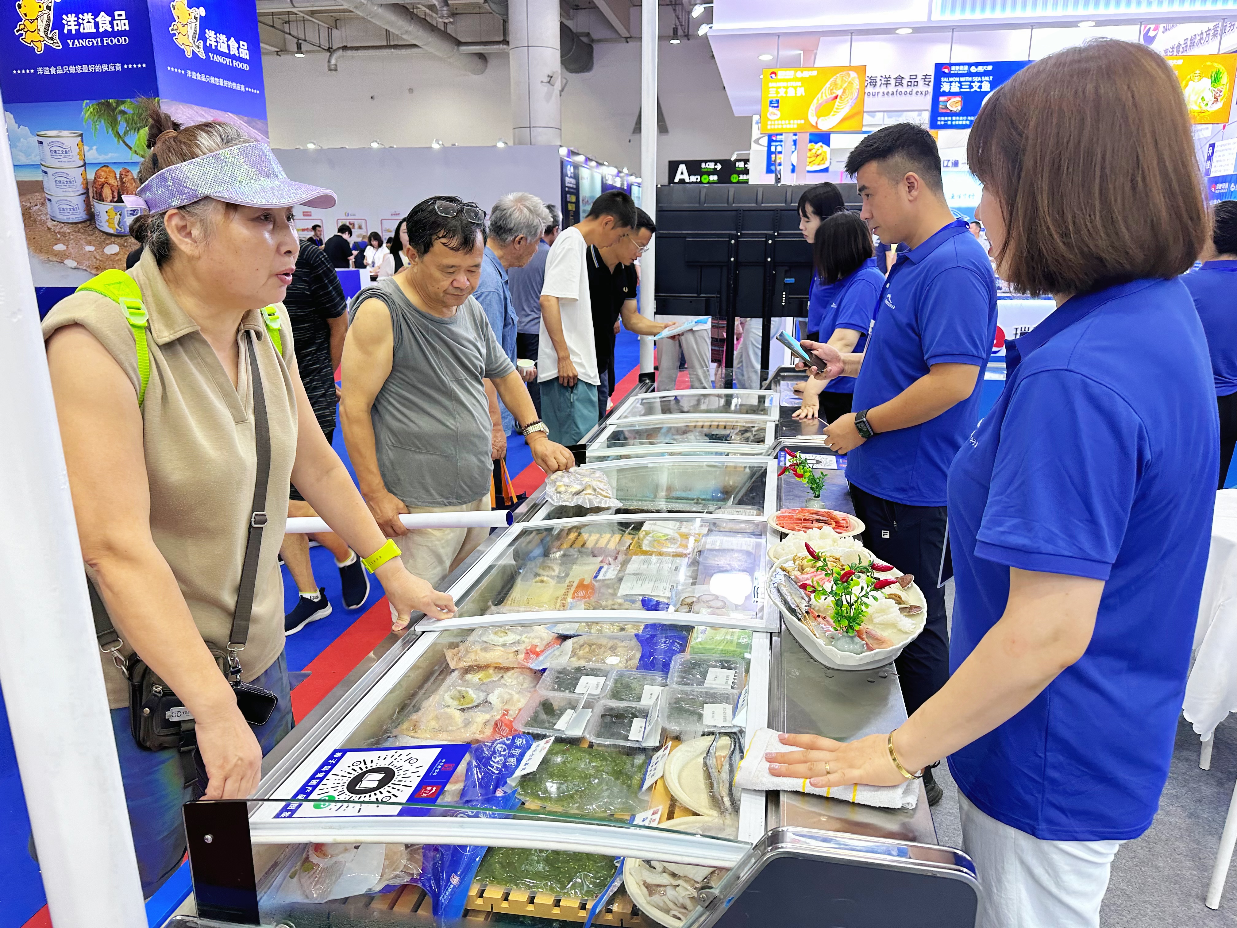 步入大連世界博覽廣場,大連農(nóng)漁產(chǎn)業(yè)集團(tuán)與獐子島集團(tuán)共同打造的海洋文化與海洋產(chǎn)品匯聚的特色展區(qū),在眾多展位中脫穎而出,吸引了絡(luò)繹不絕的參觀者。大家被這份來自深藍(lán)的召喚所吸引,駐足洽談商機(jī)、品鑒“獐子島味道”特色海鮮美食。