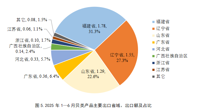 2025年上半年,全球經(jīng)濟(jì)增長(zhǎng)放緩,主要市場(chǎng)消費(fèi)需求持續(xù)疲軟,我國(guó)貝類產(chǎn)品進(jìn)出口總體呈現(xiàn)“量增額跌”特征,貿(mào)易順差同比收窄12.5%。出口方面,對(duì)美國(guó)出口額同比下降43.8%,為我國(guó)貝類出口額減少的主要方面。這可能意味著受美國(guó)挑起的加征關(guān)稅和全球主要市場(chǎng)技術(shù)性貿(mào)易壁壘影響,包括貝類在內(nèi)的高附加值水產(chǎn)品對(duì)美出口承壓明顯。進(jìn)口方面,自美國(guó)進(jìn)口額下降0.21億美元,占進(jìn)口總降幅的近80%,是進(jìn)口額減少的主要原因。與此同時(shí),從越南、泰國(guó)等東南亞國(guó)家進(jìn)口額激增、幅度超140%,在一定程度上填補(bǔ)了市場(chǎng)缺口。分省域來(lái)看,廣西、四川等內(nèi)陸省份進(jìn)口需求快速釋放,成為新的消費(fèi)增長(zhǎng)點(diǎn)。在品種結(jié)構(gòu)上,扇貝進(jìn)口額同比翻倍,但出口額大幅下滑35.6%;鮑作為高端品類,貿(mào)易價(jià)格承壓最為明顯;貽貝出口表現(xiàn)亮眼,出口額同比增長(zhǎng)42%。整體來(lái)看,新興市場(chǎng)替代與內(nèi)需驅(qū)動(dòng)正逐步成為我國(guó)貝類貿(mào)易的關(guān)鍵支撐力量。