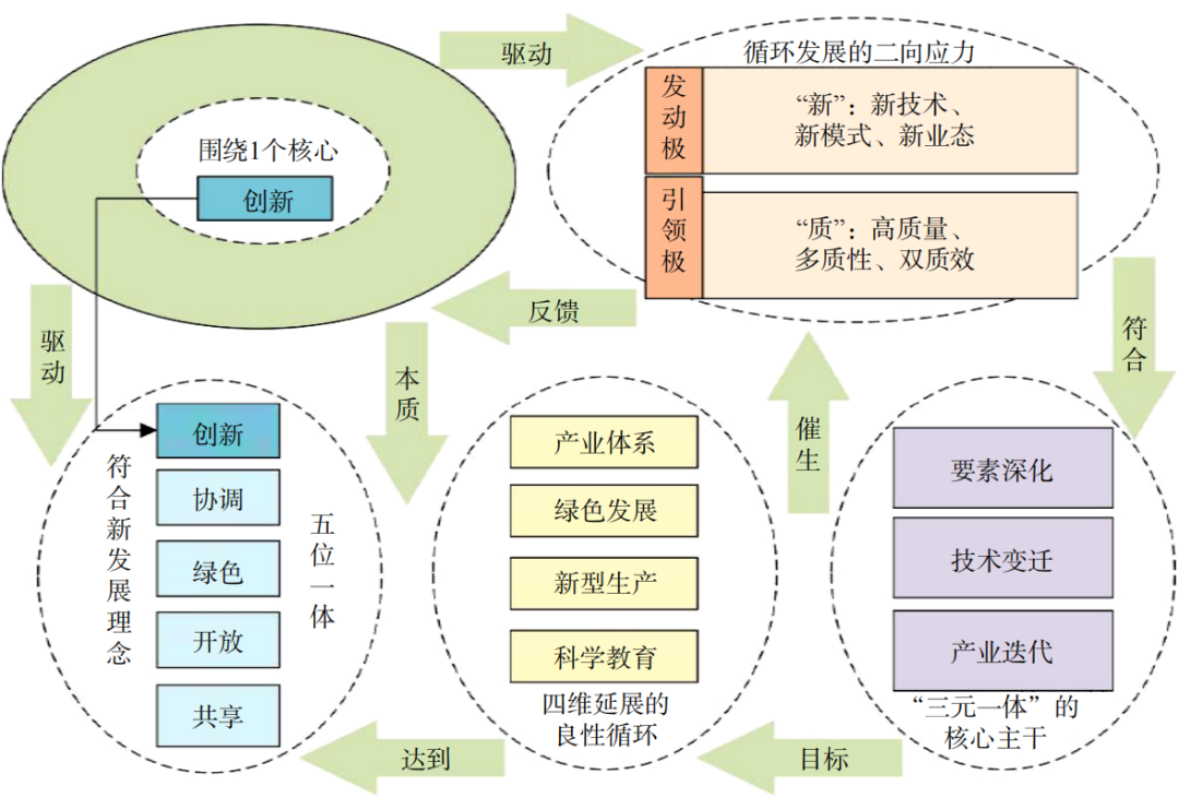 由技術革命性突破、生產要素創(chuàng)新性配置、產業(yè)深度轉型升級而催生,以勞動者、勞動資料、勞動對象及其優(yōu)化組合的躍升為基本內涵,以全要素生產率大幅提升為核心標志,特點是創(chuàng)新,關鍵在質優(yōu),本質是先進生產力(圖1)。