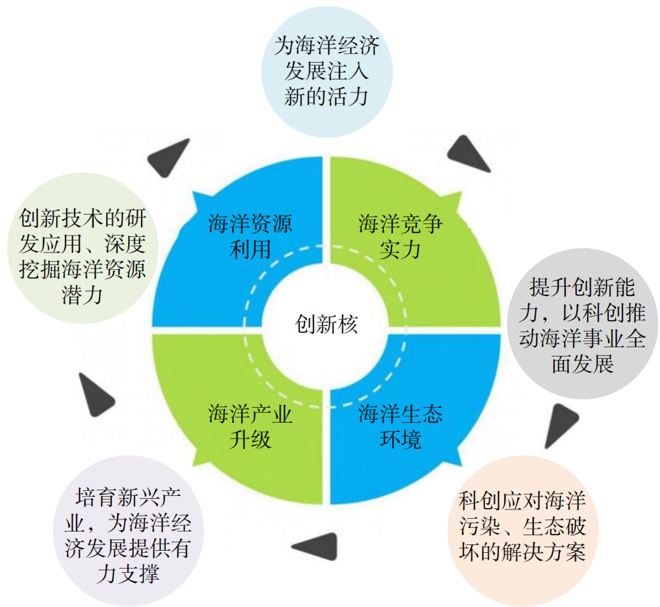 海洋科技創(chuàng)新是推動海洋新質生產力發(fā)展的強大引擎,也是引領海洋經濟騰飛的先導力量。海洋科技創(chuàng)新的重要性,不僅在其催生新產業(yè)、新模式、新動能,更在于其對于提升海洋資源利用效率、保護海洋生態(tài)環(huán)境、增強國家海洋競爭力等方面具有深遠影響(圖6)。