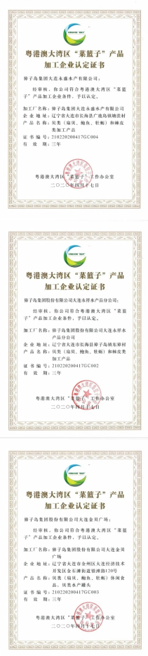 日前,經(jīng)長海縣農(nóng)業(yè)農(nóng)村局和獐子島鎮(zhèn)人民政府聯(lián)合推薦,大連市農(nóng)業(yè)農(nóng)村局和廣州市農(nóng)業(yè)農(nóng)村局聯(lián)合審核,獐子島集團被粵港澳大灣區(qū)“菜籃子”工作辦公室認定為“菜籃子”生產(chǎn)基地,集團所屬金貝廣場、永盛公司和永祥公司被認定為“菜籃子”產(chǎn)品加工企業(yè)。