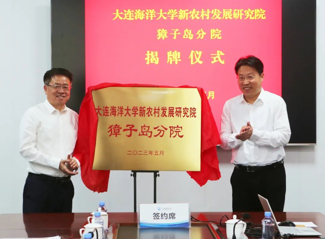 李衛(wèi)國董事長與姚杰書記為“大連海洋大學(xué)新農(nóng)村發(fā)展研究院獐子島分院”揭牌