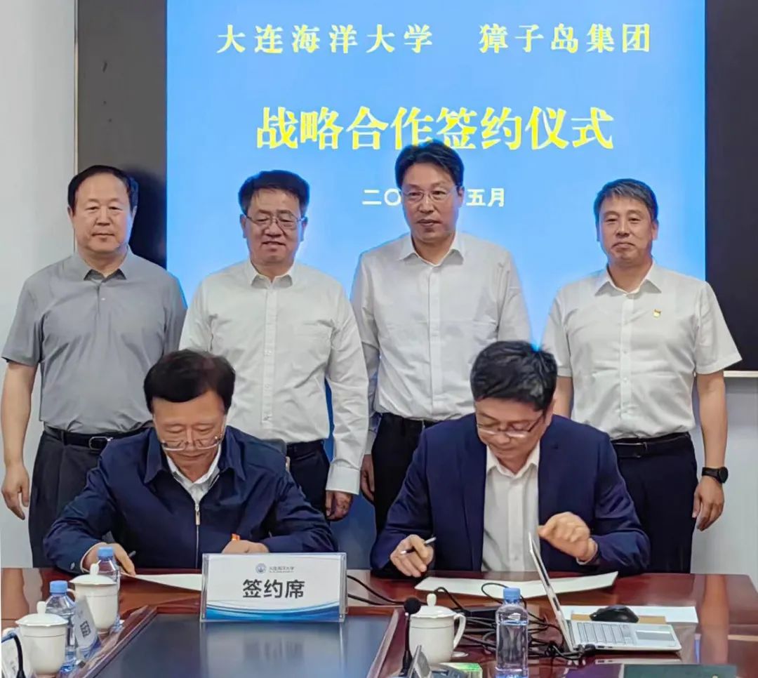 戰(zhàn)成敏總裁與宋林生校長代表雙方簽訂了《獐子島集團與大連海洋大學(xué)合作框架協(xié)議書》